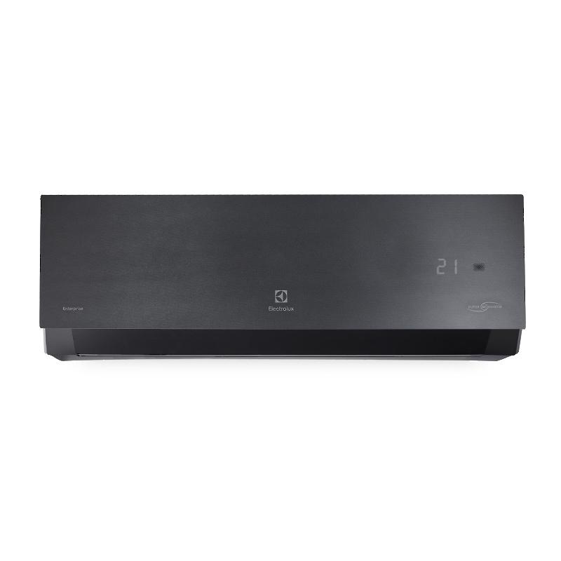 Тепловой насос (инверторная сплит-система) Enterprise Black Super DC inverter - выбирайте лучшее! Передовая технология дизайна. Плиссированная передняя черная панель внутреннего блока в сочетании с изящной и утонченной формой создают эффектный матовый дизайн. Энергоэффективное охлаждение SEER A+++ и обогрев SCOP A+++ до -25°C. Система очистки и стерилизации воздуха: холодная плазма для снятия статического электричества, ультрафиолетовая стерилизация и 6-ступенчатые фильтры создают здоровую атмосферу. Уникальное интеллектуальное решение по влажности: интеллектуальный контроль влажности для максимального комфорта.Функции и режимы модели Electrolux EACS/I-24HEN-BLACK/N8